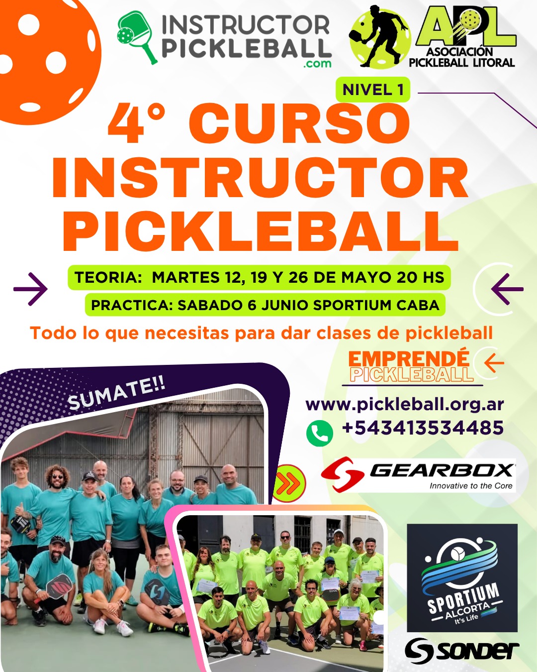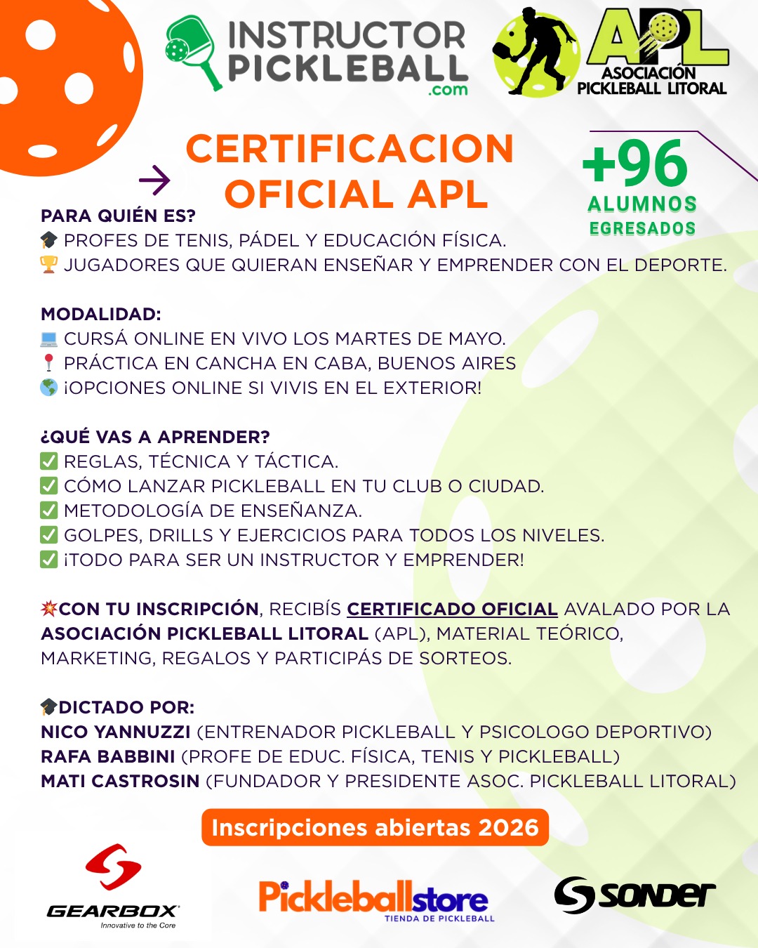 Avalado por la Asociación Pickleball Litoral (APL). Recibí tu diploma, material teórico y regalos.